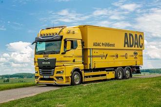 Die Zugmaschine des Mobilen Prüfdienst des ADAC Südbayern ist auf dem aktuellen Stand der Technik. Es handelt sich um einen Euro 6 Lkw (MAN TGX 26.510), der über 11 Meter lang ist, ein maximales Gesamtgewicht von 26 Tonnen hat und sehr umweltfreundlich und wirtschaftlich im Verbrauch ist. Auch sicherheitstechnisch ist er mit Notbrems- und Abbiegeassistenten auf höchstem Niveau. Der in den Truck integrierte Container kann mithilfe von vier Hydraulikfüßen heruntergelassen und seitlich sowie nach oben ausgefahren werden. Inklusive Rampen beträgt die Länge dann rund 16 Meter, die Breite 4,5 Meter und die Höhe 4 Meter.
