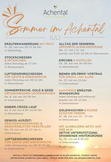 Wir haben für die Urlaubszeit im Achental wieder ein buntes Programm für Groß und Klein zusammengestellt.