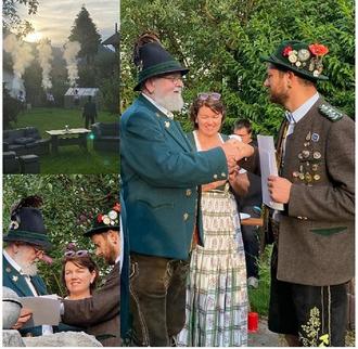 Zum krönenden Abschluss dieser Zeremonie gaben unsere Böllerschützen Ihren Salut zu Ehren der Gefeierten zum Besten und alle versammelten Schützinnen und Schützen, egal ob alt oder jung stießen auf ihrer aller Wohl an!