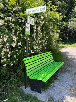 Wer sich dort hinsetzt, signalisiert: Ich suche eine Mitfahrgelegenheit – zum Beispiel zurück zur nächsten Bushaltestelle oder zum Bahnhof nach Übersee oder Bernau. Vorbeikommende Autofahrende können dann spontan jemanden mitnehmen. Ohne App, ohne Daumen raus, ganz unkompliziert.