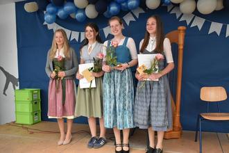 Bild der Schülerinnen mit den besten Noten bis 1,5 von links Julia Lohwieser, (1,25) Anna Unterreiner, (1,27) Eva Weiser, (1,42) Emilie Pöschl (1,50).
