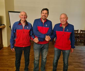 Sepp Rier, Bereitschaftsleiter der Bergwacht Grassau (m.) bedankt sich ganz herzlich bei Wolfgang Obermeier (l.), bisheriger 1. Vorstand und Ernst Oberstaller, bisheriger Kassier
