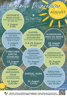 Der Hochsommer ist da und im Achental geht das Ferienprogramm in die nächste Runde! Auch im August warten abwechslungsreiche Erlebnisse auf kleine und große Entdecker: Gemeinsam streifen wir durch Wälder und Moore, basteln, bauen, staunen und bewegen uns an der frischen Luft.