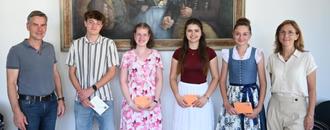 Diesen Sommer durften Marquartsteins Bürgermeister Andreas Scheck und Staudach-Egerndachs Bürgermeisterin Martina Gaukler gleich vier Jugendlichen aus unseren Mitgliedsgemeinden zu ihrem hervorragenden Schulabschluss gratulieren und ihnen ein Präsent der Gemeinden überreichen – es waren (von links nach rechts):