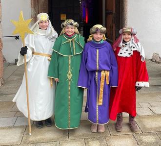 Während einer kurzen Andacht segnete Diakon Notter Weihrauch, Kreide, Kohle und nicht zuletzt die „Sternsinger“, welche daraufhin die vorab angemeldeten Haushalte aufsuchten, um den Segen fürs neue Jahr zu überbringen und an die Haus- und Wohnungstüren zu schreiben. Dieses Jahr konnten jeweils eine Kinder-, Jugend-, Frauen- und Männergruppe 1870€ für die Straßenkinder von Haiti sammeln. Hierfür sagte Diakon Johannes Notter am Ende des Hl. Drei Königs Gottesdienst herzlich vergelts Gott! Die Segenssterne des Grassauer Pfarrverbands können auch noch käuflich erworben werden.