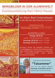 | Führung durch die Almenwelt mit anschließender kleinen Wanderung und zum Abschluss ein Kaiserschmarrn-Kochkurs im Alten Bad. Findet bei jedem Wetter statt. Veranstaltung kostenfrei. Anmeldung erforderlich bis zum Vortag, 12 Uhr beim Achental Tourismus über das Anmeldeformular, Tel. 08641-597910 oder Email an info@achental.comOrt: Achental Halle, Hauptstraße 71, 83246 Unterwössen |