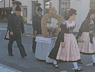 Traditionell am ersten Sonntag im Oktober fand in Marquartstein das Erntedankfest statt. Dem gut besuchten Gottesdienst ging eine Prozession voraus und Pfarrer Hans Krämmer begrüßte die Kirchgänger persönlich am Hauptportal. Der Pfarrer ging in seiner Predigt auf die Wichtigkeit des Dankens ein und erzählte eine amüsante Geschichte. Hierbei ging es darum, die Hände nicht in den Schoß zu legen und den Herrgott walten zu lassen, sondern selbst hart zu arbeiten. Am Ende des Gottesdienstes bedankte sich Pfarrer Krämmer bei allen Anwesenden, insbesondere bei sämtlichen Vereinen fürs Tragen ihrer wunderbaren Trachten.