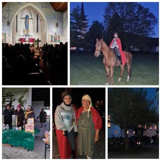 Am Mittwoch, den 8.11.2023 feierten wir das St. Martinsfest. Bei einer kurzen, feierlichen Andacht stimmten sich alle Familien auf den gemeinsamen Martinsabend ein. Im Anschluss daran folgte der Laternenumzug, bei dem die vorher fleißig einstudierten Lieder gesungen wurden. Besonders gefreut haben wir uns darüber, dass in diesem Jahr der heilige St. Martin mit seinem Pferd zu Besuch kam und den Zug angeführt hat. Die abendliche Stimmung bei schönem Wetter und das Leuchten der Laternen sorgte für strahlende Kinderaugen. Danach wurde die Legende des Martins bei einer kleinen Aufführung nachgespielt. Im Anschluss daran wurde vom Hl. St. Martin Brot für alle Kinder verteilt. Der neue gewählte Elternbeirat sorgte für warmen Punsch und bot frischgebackene Martinsgänse an.