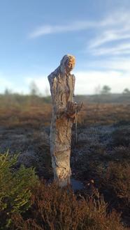 Seit Montag, 10.11.2025, steht sie nun an ihrem Platz: Die übermenschlich große und doch so human und vertraut wirkende Figur aus einem Beton-Leinen-Gemisch und Metall. Im herbstlichen Heidekraut der Kendlmühlfilzen wurde sie feierlich von einem Gremium, unter anderem bestehend aus Grassaus Bürgermeister Kattari, Künstlerin Monika Stein und Ökomodell-Gebietsbetreuerin Magdalena Bahr enthüllt. Fast mystisch anmutend regen ihre ausdrucksstarke Mimik und Gestik zum Nachdenken an.