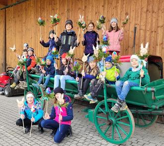 Mit einer österlichen Bastelaktion ist die Kinder- und Jugendgruppe des Marquartsteiner Gartenbauvereins in die Ferien gestartet. 15 Kinder trafen sich im Vereinsstadl, um Pflanzenstecker in Form von überdimensionalen Eiern und Hasen aus Baumscheiben zu basteln. Die Kinder kleisterten in mühevoller Kleinarbeit Transparentpapierpunkte auf Styroporeier und verzierten konzentriert Baumscheiben mit Schnurrbärten, Wackelaugen und bunten Ohren, bis wahre Kunstwerke entstanden. Nach getaner Arbeit warteten Kresse- und Schnittlauchbrote als Stärkung und die matschige Auerbräuwiese lud zum ausgelassenen Fangsdi- und Fußballspielen ein.