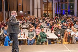 Nachhaltigkeit auf vier Beinen: Die unschlagbare Rolle heimischer Grünlandkühe Unterwössen. Peter Dufters zog mit seinem Vortrag „Die Kuh – Klimakiller oder enkeltauglich“ unerwartet große Aufmerksamkeit in der Achentalhalle auf sich. Veranstaltet vom Ökomodell Achental, stellte Dufter, ein pensionierter Landwirtschaftsdirektor mit umfangreicher Erfahrung in der Tierhaltung, seine Sichtweise auf die Rolle der heimischen Grünlandkühe im Klimawandel vor. Er argumentierte, dass diese Tiere, im Gegensatz zur massenhaften und intensiven Tierhaltung global, einen positiven Einfluss auf das Klima haben können. Dufter erklärte den Zuhörern, wie Methan, das in der Viehhaltung produziert wird, sich von CO2 unterscheidet, das aus fossilen Brennstoffen freigesetzt wird. Methan, ein stärkeres, aber kurzlebigeres Treibhausgas als CO2, wird in der Atmosphäre zu CO2 abgebaut und ist Teil eines natürlichen Kreislaufs, der durch die Photosynthese von Pflanzen unterstützt wird. Dieses Gleichgewicht, so Dufter, trägt dazu bei, dass die Methanemissionen von Grünlandkühen nachhaltiger sind als oft angenommen. Weiterhin betonte er die Bedeutung der Bioökonomie, die zeigt, wie landwirtschaftliche Nutztiere nicht essbare Biomasse (Pflanzenstängel, Rübenschnitzel, Blätter) in wertvolle Nahrungsressourcen umwandeln können, ohne mit dem Menschen um Lebensmittel zu konkurrieren. Diese Praxis, so Dufter, ist essenziell für die Ernährungssicherheit und nachhaltige Landwirtschaft.