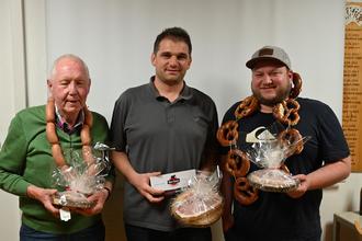 Zusätzlich gab es noch einige Überraschungspreise für besondere Leistungen. Bürgermeister Stefan Kattari, der sich im Übrigen nur aufgrund seiner schlechteren Bilanz bei Soli dem punktgleichen Altbürgermeister Rudi Jantke geschlagen geben musste, bekam den „Glückspreis“, da er der erfolgreichste Spieler im Saal bei Rufspielen gewesen war. Über alle Spiele hinweg die meisten gewonnen hatte Ernst Oberstaller mit insgesamt 36 Siegen. Mit drei gewonnenen von drei gespielten Herzsoli hatte Markus Kreuz hier die Nase vorne vor Hubert Höger, der lediglich zwei seiner vier Versuche für sich entscheiden hatte können. Den „Beruhigungspreis“ erhielt Karl Kamml wegen seiner sieben verlorenen Soli bei acht gespielten. Für die wenigsten Punkte insgesamt bekam den Schneiderpreis mit 71 Punkten Reinhard Riedl. (gbs)