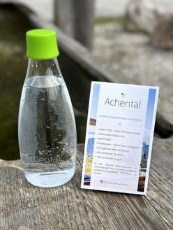 In den Tourist Informationen im Achental gibt es außerdem ab sofort umweltfreundliche, wiederverwendbare Flaschen aus Borosilikatglas (0,8 l) zu kaufen.
