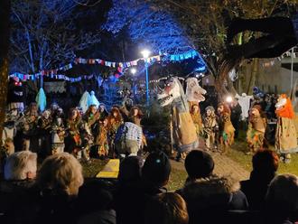 Im Anschluss an den Nachtumzug wurde die alte Mitteleschenbacher Dorfsage „Der Hexenschemel“ von den Woldschebberern aufgeführt, genau an dem Ort wo sich vor vielen Jahren diese Sage zugetragen haben soll.