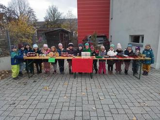 Um wie der heilige Martin anderen Menschen zu helfen, fand im Kinderhaus wieder unser traditioneller Martinsverkauf statt. Die Kinder waren im Vorfeld sehr fleißig. So entstanden zahlreiche Christbaumanhänger, verschiedene Teelichthalter, weihnachtliche Deko, Apfel- und Quittengelee, Pizzaschnecken und Gewürzecken. All diese selbstgemachten Sachen standen den Eltern und Großeltern zum Verkauf. Der Erlös dieser Aktion geht an einen guten Zweck.