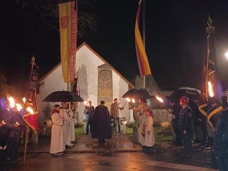 Die Gedenkfeier am Volkstrauertag fand heuer wieder in den Abendstunden statt. Im Anschluss an den Gottesdienst formierte sich ein kleiner Zug und zog, begleitet von den Fackelträgern der Feuerwehr und der Soldatenkameradschaft, zum Ehrenmal der gefallenen und vermissten Soldaten unserer Gemeinde. Nach einem kurzen Gebet von Herrn Pfarrer Harrer hielt Bürgermeister Stefan Bußinger die Ansprache für die politische Gemeinde. Die wesentlichen Punkte darin waren der nun schon seit über 1,5 Jahre andauernde Krieg in der Ukraine sowie der Angriff der Hamas auf Israel. Er gedachte aller Opfer der Kriege und Bürgerkriege sowie natürlich der Gefallenen und Vermissten unserer Gemeinde.