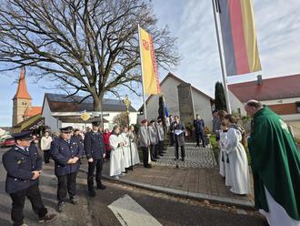 Die Gedenkfeier am Volkstrauertag begann um 10 Uhr mit einem Gottesdienst in der St. Nikolauskirche. Im Anschluss gingen die Abordnungen der Vereine, der Bürgermeister mit dem Gemeinderat, der Pfarrer mit seinen Ministranten und der Musikkapelle zum Ehrenmal unserer gefallenen und vermissten Soldaten. Begleitet wurden Sie dabei von zahlreichen Bürgerinnen und Bürgern. Nach einem Gebet von Pfarrer Peters richtete Bürgermeister Stefan Bußinger das Wort an die Anwesenden. Er erinnerte nicht nur an die vielen Gefallenen und Verletzten der Weltkriege, sondern verwies auch auf die Brandherde der aktuellen Zeit. Er erinnerte auch daran das der Frieden oft im Kleinen in der Gemeinde, in den Familien beginnt. Hoffnung macht dabei allerdings, dass viele den Gemeinsinn, der den Klebstoff unserer Gesellschaft bildet, glücklicherweise noch nicht vergessen haben. Sie engagieren sich ehrenamtlich in Vereinen und in Bürgerinitiativen, sie dienen in Uniform für das Gemeinwohl, sie helfen karitativ und sind Förderer sozialer, humanitärer oder kultureller Aufgaben. Dies lässt uns doch auch positiv in die Zukunft blicken, resümierte der Bürgermeister.