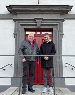 Symbolische Schlüsselübergabe zwischen Willi Albrecht (1. Bürgermeister Markt Weidenbach) und Marco Meier (1. Bürgermeister Stadt Ornbau)