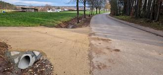 Bei der Kontrolle des Durchlasses, unterhalb des Sportplatzes, wurde festgestellt dass dieser eingebrochen war. Dies war auch mit der Grund, weshalb bei Starkregenereignissen, das Wasser von der Gundekarstraße bis in die Rathausstraße gelaufen ist. Mittlerweile haben wir diesen fachgerecht reparieren lassen. Durch diese Maßnahme und das Abschieben des Banketts in diesem Bereich wird das Regenwasser nun in Richtung Dorfweiher abgeleitet und läuft nicht mehr unkontrolliert bis in den Dorfbereich.