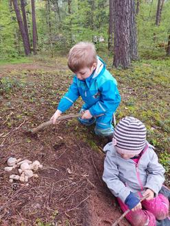 Im Mai machten sich die drei Kindergartengruppen wieder für jeweils eine Woche auf in den Wald. Bei den Wanderungen durch den Mönchswald steuerten wir verschiedene Ziele an, unter anderem die „Eierbahn“, die „Duplowiese“ oder den „Bauer Hahn“. Durch die Waldwochen lernen die Kinder ihre Umgebung, die Natur und die Tiere besser kennen und schätzen. Besonders viel Spaß macht es den Kindern aus Stecken und anderen Naturmaterialien tolle Sachen zu bauen, wie Insektenhotels oder den „Löwenzahn-Löwe“ (siehe Foto). Im Wald konnten wir auch wieder einige Tiere entdecken. Besonders spannend war zum Beispiel auch das Beobachten einer Schnecke, die einen Baumstamm nach oben kroch. Die Kinder hatten wie jedes Mal viel Spaß im Wald!