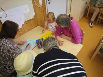 Am Mittwochnachmittag, den 14. Juni waren die Großeltern der Kinder ins Kinderhaus eingeladen. Die Kinder haben sich sehr darauf gefreut, ihren Omas, Opas und Tanten das Kinderhaus, den Garten und ihre Gruppe zu zeigen. Zu Beginn versammeln sich alle Kinder mit ihren Großeltern in der eigenen Gruppe. Dort wurden ein Begrüßungslied und ein Gedicht vorgetragen. Im Anschluss gestalteten sie ein Portfolioblatt für den Ordner jedes Kindes. Dieses wurde auch mit einem gemeinsamen Erinnerungsfoto versehen. Im Anschluss waren alle zu Kaffee und Kuchen im Bürgersaal eingeladen. Der Oma-Opa-Nachmittag wird uns allen noch lange in Erinnerung bleiben!