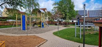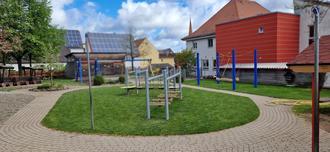 Im Rahmen des Kindergartenfestes, am 28.Juni 2024, wurde der neugestaltete Garten eingeweiht. Eltern, Großeltern und Interessierte hatten hier die Möglichkeit sich selbst ein Bild davon zu machen. Die Gemeinde investierte hier nicht nur in neue Spielgeräte, der ganze Außenbereich des Kindergartens und der Krippe wurde neu gestaltet. Hinzu kam noch ein neuer Zaun der den ganzen Bereich abrundet. Die Kosten für die gesamte Maßnahme beliefen sich auf über 60.000€. Wer sich das Ergebnis betrachtet wird sehen das diese sehr gut investiert sind. Auch im Innenbereich wurden Maßnahmen in Höhe von rund 13.000€ getätigt. Den Großteil der Kosten machten hier die Schallschluckdecken aus die in den Gruppenräumen eingebaut wurden. Hinzu kamen noch die Kosten für die Umnutzung des Bürgersaals in einen Gruppenraum. Die schnelle und unkomplizierte Umsetzung, vor allem des Außenbereichs, konnte nur durch die hervorragende Zusammenarbeit und Unterstützung des Elternbeirats, des Kindergartenteams, des Bauhofes, ein Paar fitten Opas, der ausführenden Firma sowie der Verwaltung stattfinden. Hier nochmal meinen herzlichen Dank an alle Beteiligten.