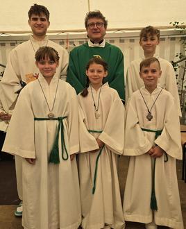 Im Rahmen des Gottesdienstes am diesjährigen Gänswosnfest durfte Hr. Pfr. Swat zwei langjährige Ministranten verabschieden. Vielen Dank an Jonas für 6 Jahre und Johannes für 10 Jahre Ministrantendienst. Neu in die Gemeinschaft der Minis durfte Hr. Pfr. Swat Chiara, Laurenz und Teresa mit aufnehmen und ganz herzlich willkommen heißen.