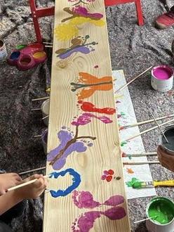 In den letzten Wochen des Kindergartenjahres organisierte der Elternbeirat in Zusammenarbeit mit dem Kinderhaus noch eine „Gartenzaunverschönerungsaktion“. Wir haben zusammen mit den Kindern der einzelnen Gruppen Holzbretter mit den verschiedensten Motiven bemalt. Die „Kleinen“- Künstler haben die ganze Farbpalette zu Holz gebracht, die „Größeren“ haben mit Fuß- und Handabdrücken gearbeitet und dem Malpinsel freien Lauf gelassen. Jede Gruppe hat für sich ein ganz besonderes Unikat gezaubert und die Kunstwerke können am Kinderhauszaun bewundert werden. Daneben haben noch die Erzieherinnen zum Pinsel gegriffen und das Logo des Kinderhauses auf die Bretter gebracht, dies ist am Eingang des Gartens montiert. Wir möchten uns auf diesem Wege bei ALLEN bedanken, die diese Aktion so tatkräftig unterstützt haben, beim Bemalen, beim Befestigen und bei der Firma Latteier, die uns die Holzbretter gespendet hat. Die Farben hat der Elternbeirat beigesteuert.
