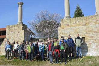 An den herrlich blühenden Mandelbäumen wanderten wir auf dem Höhenrücken bis zur Ruine des Römischen Weingutes Weilberg. Dort legten wir eine Pause ein, genossen den Sonnenschein, Süßes und Kreislauftropfen.
