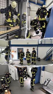 Der Fokus bei der ersten Tagesübung liegt traditionell auf unseren Atemschutzgeräteträgern. Diese fuhren vormittags zur Werksfeuerwehr Merck in Gernsheim um den jährlichen Streckendurchgang zu absolvieren: Laufband, Fahrrad, und Endlosleiter galt es ebenfalls zu bezwingen.