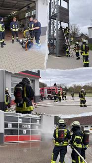 Parallel wurden am Standort Brandau verschiedene Stationen durchlaufen: Atemschutzüberwachung, Lüftereinsatz, Atemschutz-Notfallplatz und Schlauchmanagement. Am Nachmittag wurde der lehrreiche Tag durch eine Einsatzübung im und um das Feuerwehrhaus abgerundet.