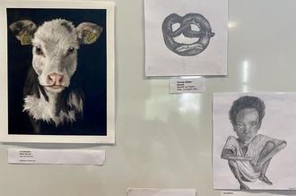Am Donnerstagabend wurde die thematische Kunstausstellung „Essen!“ der diesjährigen E-Phase in der Aula eröffnet, mit anspruchsvollen, kreativen Beiträgen aus dem Bereich der Malerei, der Fotografie und der Objektkunst.