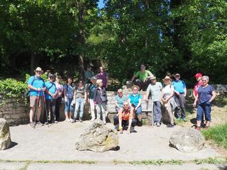 Über den Ort Ludwigshöhe ging es zum Vögelsgärtenbrunnen. Hier wurden nun die Rucksäcke der Wanderführer endgültig von der Last befreit denn der gute Rheinwein fand dankbare Abnehmer.