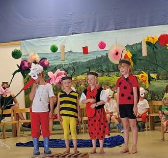 Nach einem herzlichen Gottesdienst, gehalten von Andreas Martin, unter musikalischer Begleitung des Posaunenchors "die Johannisbachtaler" und Michael Partheil, eroberten die Kindergartenkinder, die in verschiedene Tierrollen geschlüpft waren, die Bühne. Enten, Bienen, Käfer, Störche, Frösche und Schmetterlinge erfreuten das Publikum mit ihrer Vorstellung "Sommerfest auf der Wiese". Auch eine spätere Tanzeinlage der "Dreamgirls" trug zu einer guten Stimmung bei.
