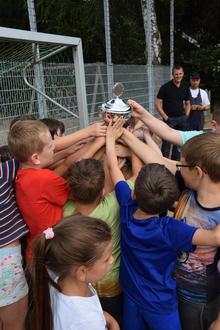 Der Nachwuchs feierte ihren erneuten Sieg ausgelassen, belohnt mit einem Pokal, der in der Sonne blitzte, und die Großen mussten wohl oder übel die Niederlage eingestehen. Gefeiert wurde anschließend gemeinsam – bei kühlen Getränken und Würstchen wurde der spannende Spielverlauf nochmal erörtert – und eine Revanche angekündigt. Ein herzliches Dankeschön geht an alle Mitwirkenden und an den Schützenverein Klein-Bieberau für die Kühlung unserer Getränke.