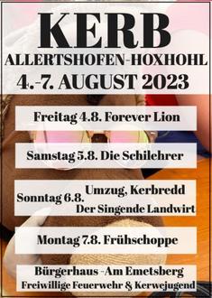 Infos auch unter www.ff-allertshofen-hoxhohl.de oder auf facebook oder instagram (kerwejugendallertshofenhoxhohl)