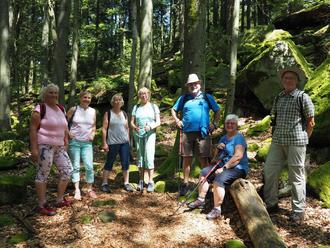 Sieben Mitglieder der OWK Ortsgruppe Ernsthofen trafen sich am Sonntag den 21.07.2024 um 10:30 Uhr am Dorfbrunnen in Ernsthofen zur Wanderung am Himbächel-Viadukt. Es wurde in Fahrgemeinschaften zum Viadukt, in der Nähe von Hetzbach gefahren. Dort trafen wir auf ein weiteres Mitglied. Mit nun 8 Wanderfreunden/innen begann die 10 Kilometer lange Wanderung bei schwülem aber trockenen Wetter durch den Wald in Richtung Himbachelquelle. Die ersten 3,5 Kilometer ging es auf verschlungenen Pfaden nur bergauf. Bei 28 Grad mussten zwischendurch immer mal wieder Trinkpausen eingelegt werden. Oben, an der Gebhartshütte wurden die Wanderer/innen, aber am dortigen Getränkekessel belohnt. Es gab kalte Getränke aus Erdröhren, die bei diesen Temperaturen sehr gut schmeckten. Die Getränke konnten gegen eine Spende von 1,80€ käuflich erworben werden. Weiter ging die Wanderung durch ein kleines Felsenmeer nach Ebersberg.