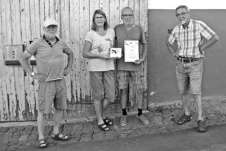 Auf dem Bild (v.l.n.r.): Werner Lenhardt (Rechner und Vogelschutzbeauftragter der NABU-Gruppe Modautal-Asbach), Anita und Günther Klenk sowie Hans-Jürgen Großkopf (Rechner bei der Vogelschutzgruppe Klein-Bieberau)