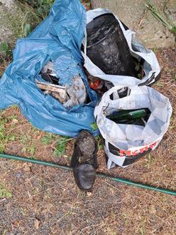Zum Vorschein kam Unglaubliches: Ein entsorgter Müllsack mit alten Bilderrahmen und geborstenem Glas, kaputte Flaschen, Teile eines Wäscheständers, eine Kaffeemaschine, jede Menge Kleidungsstücke – auf drei prall gefüllte Plastiktüten verteilte sich das Sammelgut.
