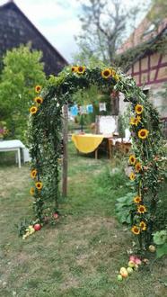 Mit einem festlichen Blumenbogen hat die Freie Dorfschule Modautal ihr erstes großes Fest gefeiert. Zwölf Kinder durchschritten das Tor in einen neuen Lebensabschnitt.