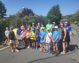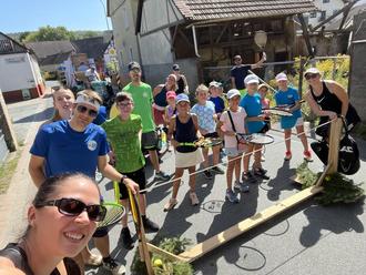 Mit einem rollenden Tennisnetz wurde durch die Straßen von Brandau Tennis gespielt.