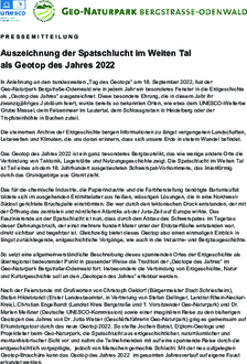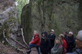 Nach der Feierstunde mit Grußworten von Christoph Oeldorf (Bürgermeister Stadt Schriesheim), Stefan Hildebrandt (Erster Landesbeamter, in Vertretung von Stefan Dallinger, Landrat Rhein-Neckar-Kreis), Christian Engelhardt (Landrat Kreis Bergstraße und 1. Vorsitzender Geo-Naturpark) und Dr. Marlen Meißner (Deutsche UNESCO-Kommission) sowie einer imaginären Reise zu den bisherigen Geotopen des Jahres von Dr. Jutta Weber (Geschäftsführerin Geo-Naturpark) ging es gemeinsam auf Erkundungstour durch das neue Geotop 2022. So stellte Jochen Babist, Diplom-Geologe und Projektleiter beim Geo-Naturpark, die Spatschlucht aus erdgeschichtlicher, naturräumlicher und montanhistorischer Sicht vor und nahm die Teilnehmenden mit auf eine spannende Reise durch die erdgeschichtlich vorgeprägte, jedoch von Menschen gemachte Schlucht. Mit der neu aufgelegten Geotop-Broschüre kann das Geotop des Jahres 2022 im gesamten Jahresverlauf auf eigene Faust erkundet werden.