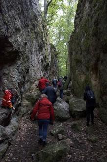 Jochen Babist (Diplom-Geologe und Projektleiter Geo- Naturpark)bei der Exkursion durch die Spatschlucht.