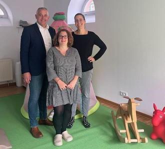 Zum 02. September hat die neue Krippengruppe „Eichhörnchen“ in der Hofreite in Brandau als Außengruppe des Kindergarten Sonnenblume ihren Betrieb aufgenommen. In der Krippengruppe stehen zukünftig bis zu 12 Plätzen für 1 und 2 jährige Kinder zur Verfügung. Derzeit findet die Eingewöhnung der ersten Kinder statt. Am 11. September gab es im Rahmen des „Tag der offenen Tür„ die Möglichkeit, die Räumlichkeiten der neuen Krippengruppe zu besichtigen und die Erzieherinnen kennenzulernen. Für die Gäste waren Getränke, Kaffee und Kuchen vorbereitet. Die Gäste waren erfreut von der schönen kleinkindgerechten Einrichtung der Gruppe und den Möglichkeiten und den Möglichkeiten den die verschiedenen Räume bieten.