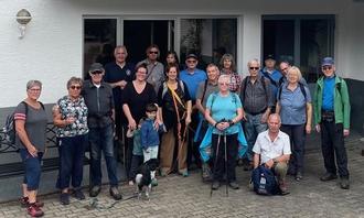 Die erste Etappe führte über die Höhe und auf Waldrandwegen mit herrlichen Ausblicken Richtung Ernsthofen. Am Wasserhochbehälter hatte man einen wunderbaren Rundblick über Asbach. Am Treffpunkt bei der Firma Ruppel in Asbach überraschte der Ortsvorsteher André Ruppel, wie seither immer, mit einen Sektempfang, auf den wir uns schon immer sehr freuen. Leider konnte er aus familiären Gründen dieses Mal nicht selbst anwesend sein, ließ sich aber charmant und freundlich vertreten.