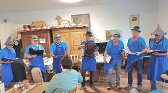 Im Gasthaus von Stein stärkten sich die auf 30 Personen angewachsenen Teilnehmer und freuten sich über die angenehm lockere Stimmung, die sehr schnell durch die musikalische Unterhaltung aufkam. Die „Ludwigsbuwe“ des OWK eröffneten schwungvoll in Ihrer Tracht den musikalischen Reigen, gefolgt von Gret Thaler & Pit vom Verein 11 Orte sowie der Vorsitzenden Katharina Maul, die neben Gitarre auch mit Ihrer tollen kräftigen Stimme sowohl modern Schmissiges als auch Nostalgisches zum Besten gaben. Pit Roßmann als „Ourewäller Hartriel“ glänzte mit selbst getexteten und vertonten Liedern, die früher und heute den Alltag besingen. So ging ein schöner Wandertag zu Ende.