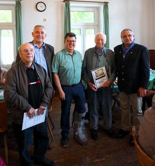 Um 14.00 Uhr stand eine ganz besondere Ehrung auf dem Programm. Unser Mitglied Georg Lantelme, der 1954 in den Verein eingetreten war, konnte sein 70jähriges Vereinsjubiläum begehen. Es war uns eine große Ehre, dass Herr Landrat Schellhaas und Herr Bürgermeister Lautenschläger sich trotz gefüllter Terminpläne die Zeit nahmen, das Kelterfest zu besuchen, um Georg Lantelme zu seinem außergewöhnlichen Jubiläum zu gratulieren.