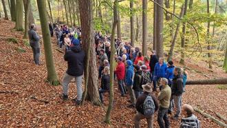 Zur Wanderung am Sonntag, den 03.11.2024, ab 11:00 Uhr kamen über 80 interessierte Bürgerinnen und Bürger. Die rund 65 Hektar große Fläche wurde in ca. 2 Stunden umrundet. Bürgermeister Jörg Lautenschläger begrüßte die Anwesenden und gab an verschiedenen Stellen der Wanderung Informationen zum geplanten Vorbehaltsgebiet oberflächennaher Lagerstätten „Steinbruch“ an die Wandergruppe weiter. Es bestand auch die Möglichkeit, Fragen zu stellen, sich auszutauschen und Anregungen einzubringen. Innerhalb der Wandergruppe bestand Einigkeit darüber, dass die wunderbare Natur und der schöne Wald in diesem Gebiet unbedingt erhalten bleiben müssen und sich die Gemeinde gegen eine Darstellung der Fläche als Vorbehaltsgebiet oberflächennaher Lagerstätten „Steinbruch“ zur Wehr setzen sollte. Durch Erschütterungen, Lärm, Staub und LKW-Verkehr würden mittelfristig schwere Belastungen für alle Modautaler Bürgerinnen und Bürger Allgemein herrschte Unverständnis darüber, dass Webern mit rund 175 Einwohnern und einer innerörtlichen Fläche von 10 Hektar nicht im gültigen Regionalplan 2010 und im Vorentwurf zum Regionalplan 2024 als Siedlungsbestand dargestellt wird. Auch der Name Webern findet sich nicht in der Darstellung des Regionalplans und des Vorentwurfs zum neuen Regionalplan.