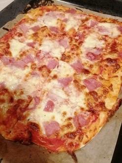 8 Kids waren an der Aktion beteiligt um den vorbereiteten Pizzateig auszurollen, mit Tomatensoße zu bestreichen und nach Wahl zu belegen. Jeder hatte eine Aufgabe – Salami und Schinken schneiden, den Backofen auf die richtige Temperatur bringen und natürlich die Gespräche, wann eigentlich genug Käse auf der Pizza ist.
