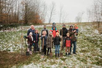 Am Samstag, den 22.11.2024 konnte Ortsvorsteher Peter Roßmann mit ein paar interessierten Eltern und zahlreichen Kindern sowie Mitgliedern des Ortsbeirates die zuvor bestellten und abgeholten sechs Obstbäume pflanzen. Alle hatten trotz kühler Temperaturen Spaß dabei, die Holzpfosten in den Boden zu rammen, die Bäume fachgerecht einzupflanzen, anzubinden und mit Verbiss-Schutz zu versehen. Wir hoffen nun, dass die Apfel-, Kirsch-, Birnen- und Zwetschgenbäume gut anwachsen und bald Früchte tragen. Ernten darf dann jeder, die Bäume sind für die Allgemeinheit bestimmt. Der Ortsbeirat bedankt sich bei allen Helfern und Spendern, insbesondere bei Dennis und Dieter Roßmann, die das Grundstück für die Bepflanzung zur Verfügung stellten und die Beschaffungskosten der Bäume übernahmen.